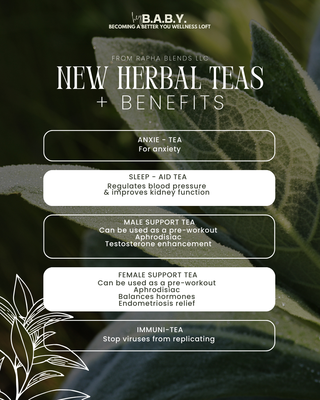 Herbal Teas Blended from high-quality ingredients, formulated to provide a delicious and healthful experience. With a wide range of flavors to choose from, each cup is packed with powerful ingredients that promote overall well-being. Sip and savor the benefits of nature's finest herbs with every relaxing and rejuvenating sip.